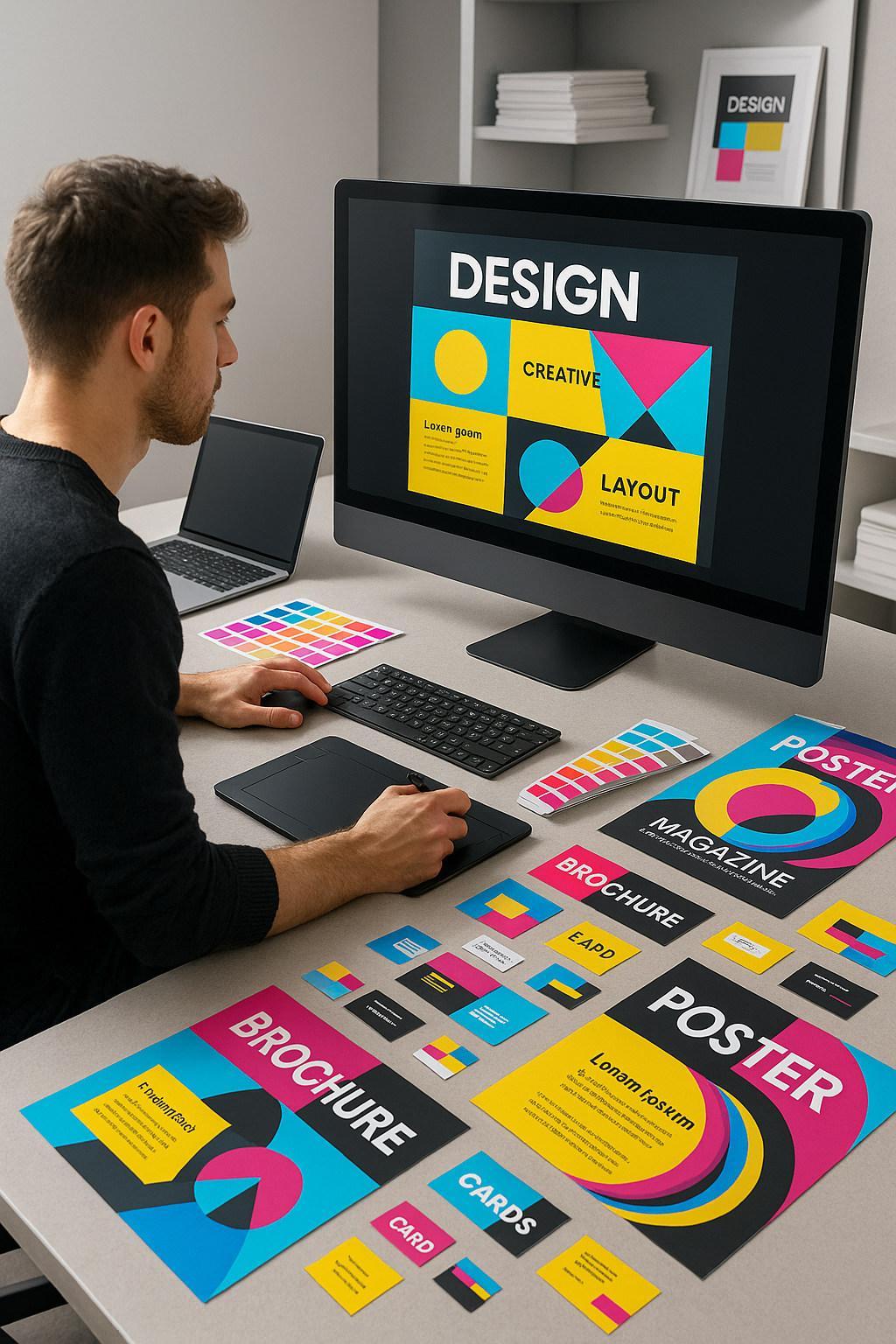 Depending on complexity, most graphic and print projects are completed within 3–5 business days.
